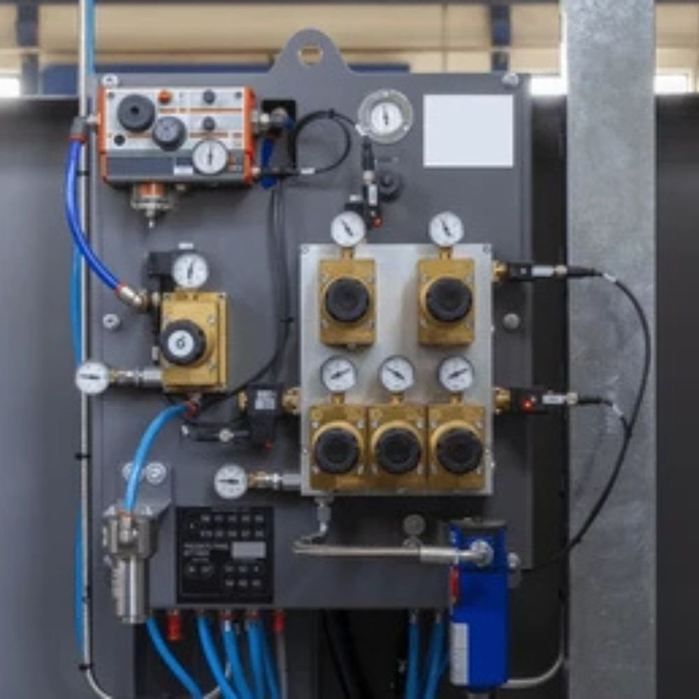 A manually operated panel where compressed air is controlled using levers, push buttons, or switches.